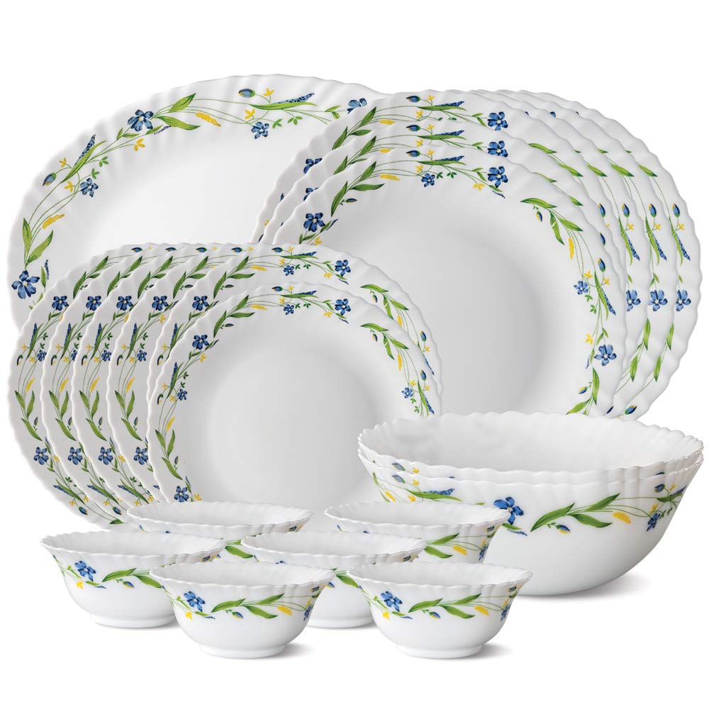 Larah by Borosil Cripper Opalware Dinner Set, 21-Pieces, White