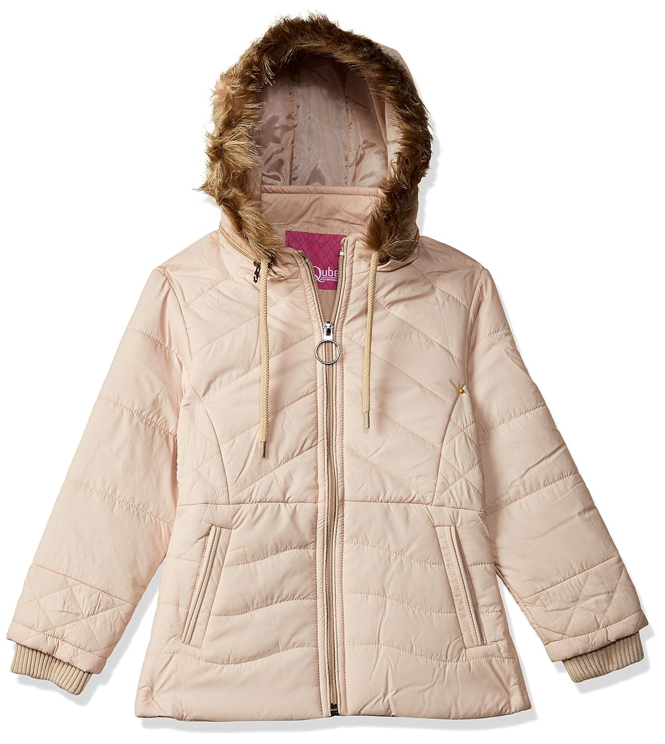 Qube By Fort Collins Girl's Quilted Regular fit Jacket (69187AZ_Beige_28)