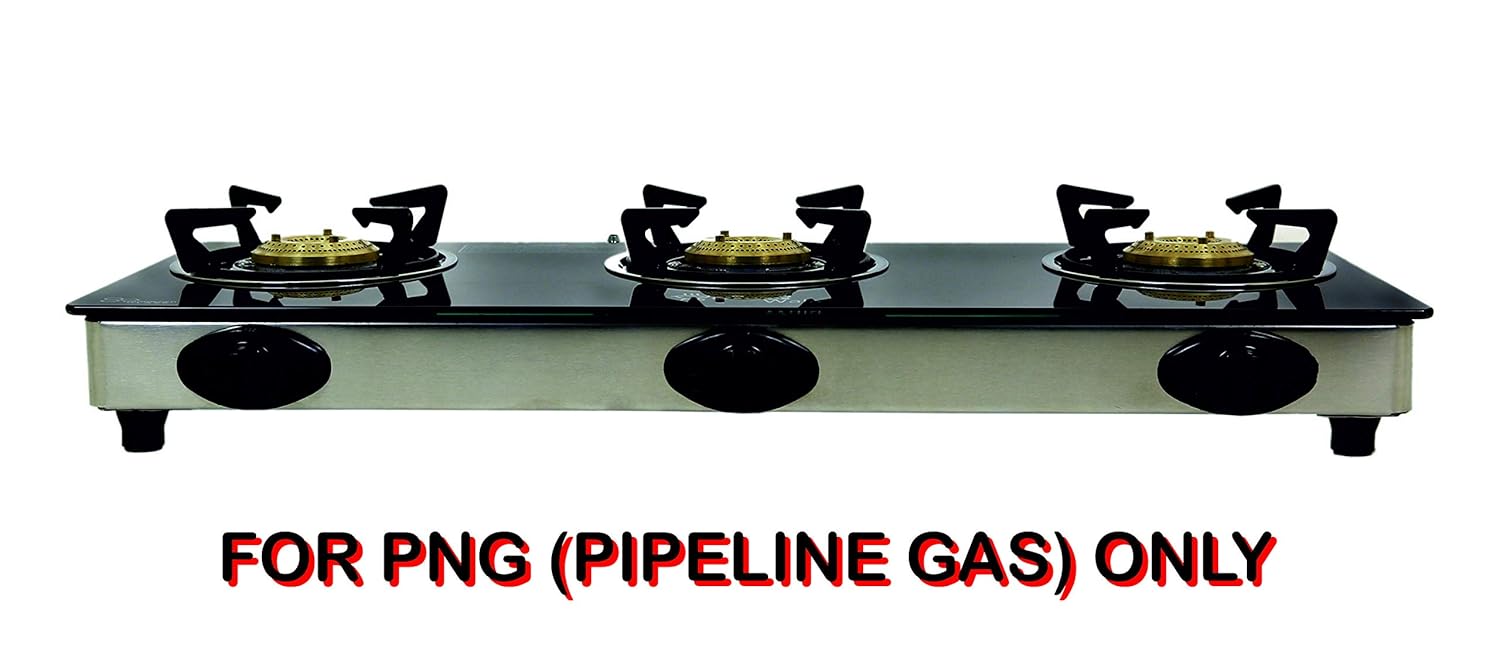 SIGRI-WALA TOUGHENED Glass Stainless Steel 3 Burner Gas Stove for PNG (Pipeline Gas) Only