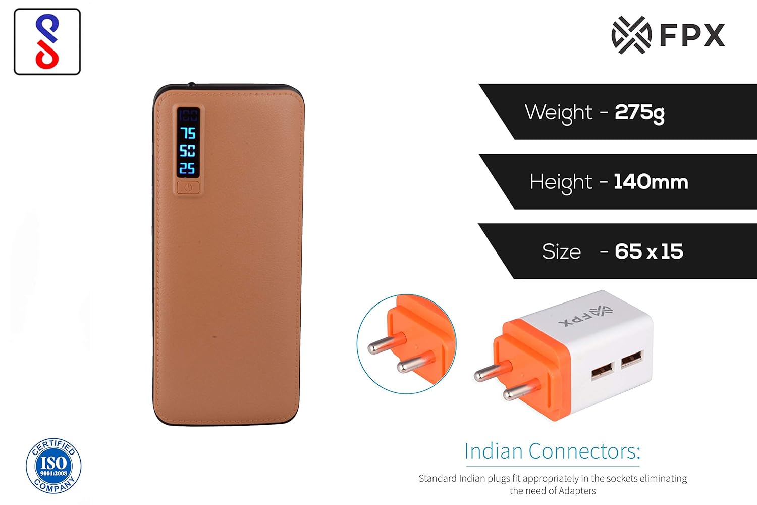 FoxProx FX-13000-38 13000mAH Lithium Ion Power Bank with Wall Charger (Brown)
