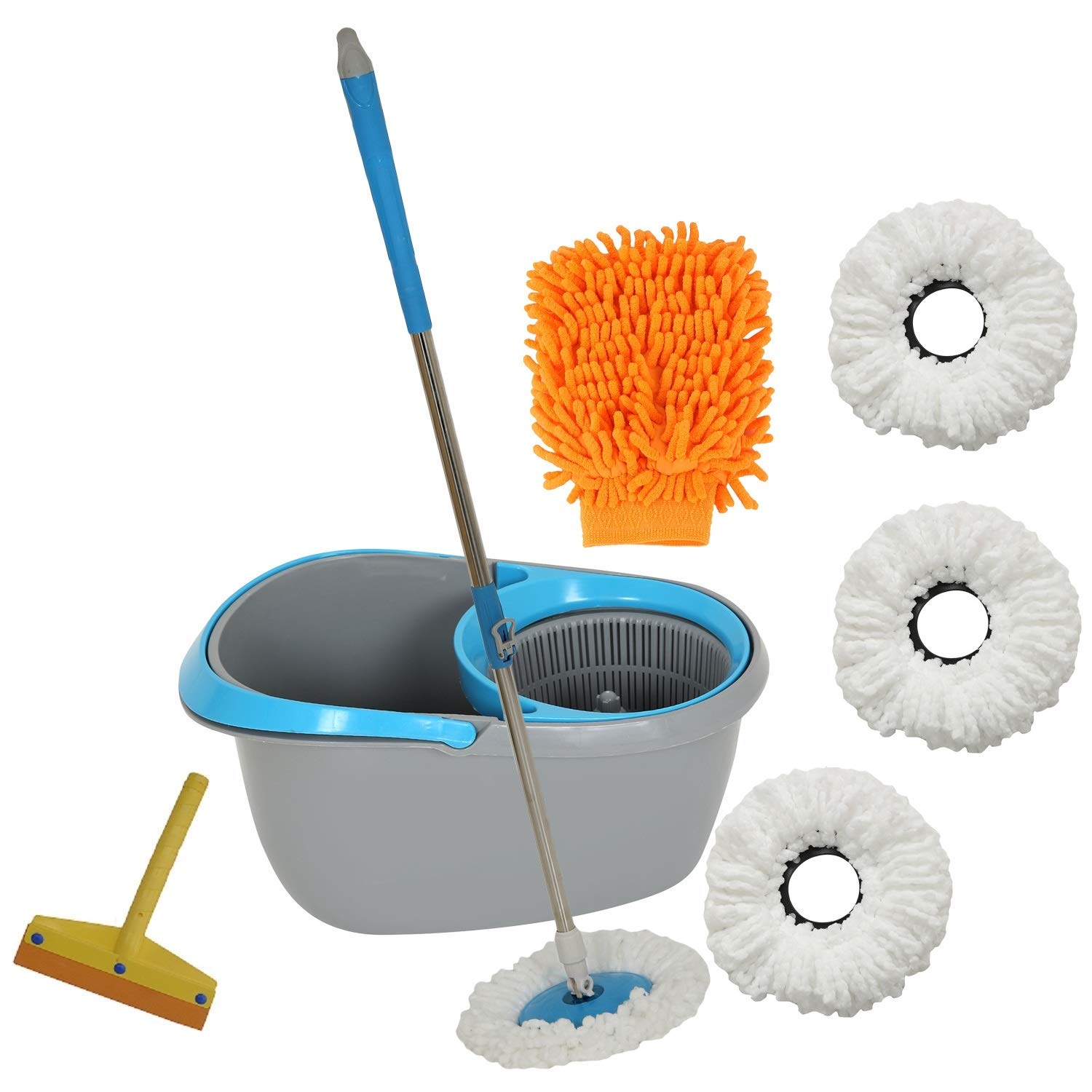 Fretol plastic Mop +4 Refill+Rod + Wiper +gloves- Grey/Blue