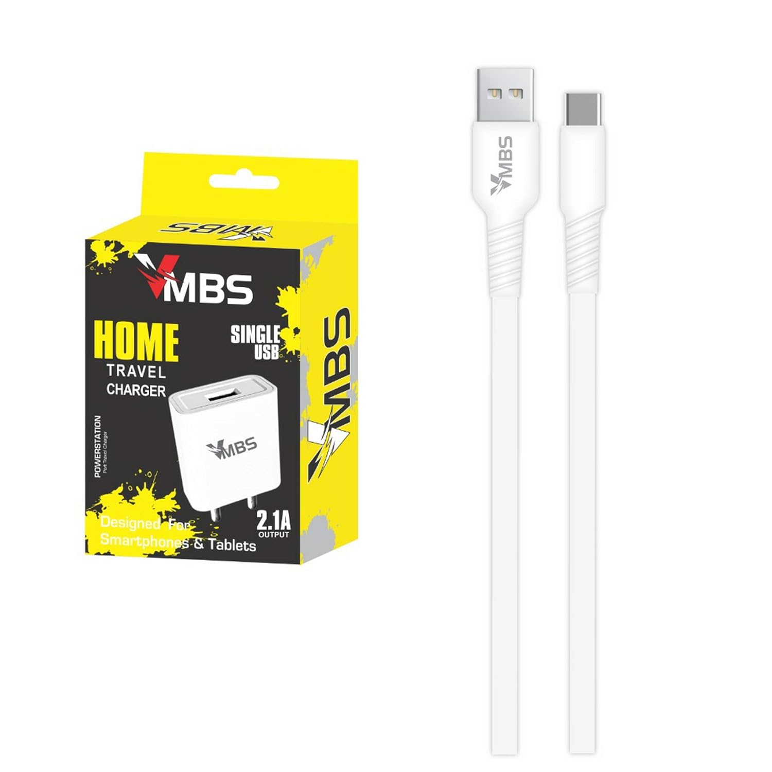 VMBS Fast Type C Android Adapter Like Mobile Charger with 1 m USB Type-C Charging Data Cable for Samsung Galaxy M30 (2.1 Ampere, White)