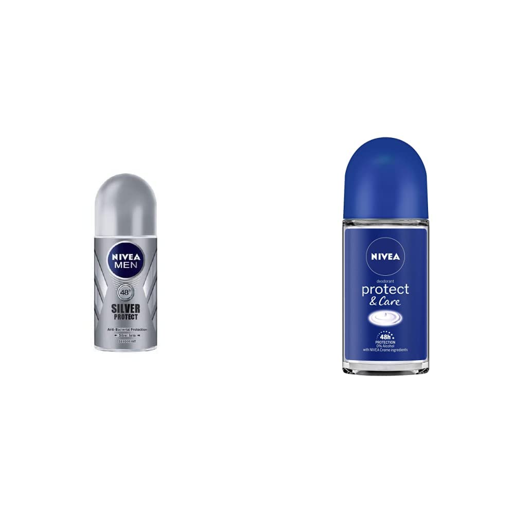 Nivea Deodorant Roll On, Silver Protect for Men, 50ml And Deodorant Roll On, Protect & Care for Men, 50ml